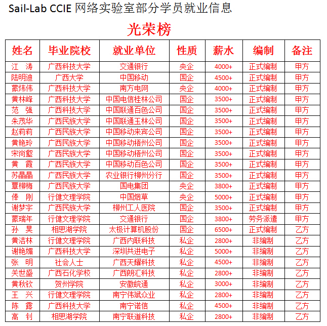 你還在為自己的前途感到迷茫嗎? 你還在為自己的就業(yè)感到失措嗎? 你還在為自己的技術(shù)水平感到慚愧嗎? Sail-Lab網(wǎng)絡(luò)實(shí)驗(yàn)室在IT職業(yè)道路上為你保駕護(hù)航,最專業(yè)的網(wǎng)絡(luò)技術(shù)專家,打造一流的精品課程,采用獨(dú)特高效的教學(xué)模式,為您呈現(xiàn)集理論與實(shí)踐于一體的精彩課堂!凹睂W(xué)生之所急,想學(xué)生之所想”,我們始終把學(xué)員的知識(shí)、技能、就業(yè)放在第一位,讓學(xué)員學(xué)有所得,學(xué)有所用。相信Sail-Lab,就是相信技術(shù)的力量!選擇Sail-Lab,就是選擇更廣闊的就業(yè)平臺(tái)!