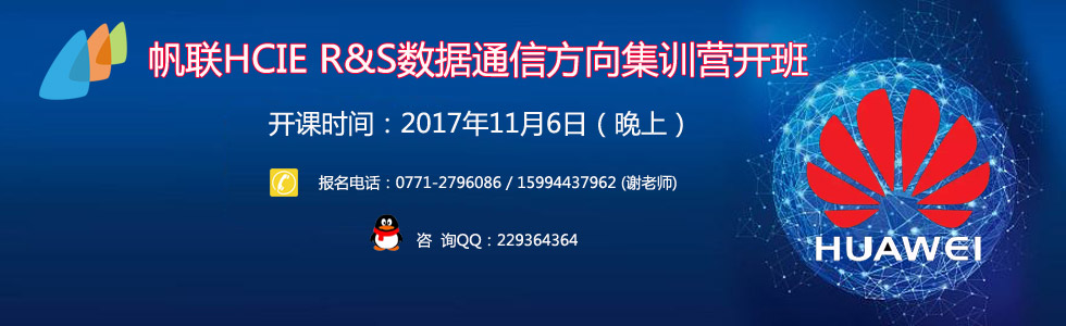 HCIE R&S集訓營開課時間:2017年11月 6 日(晚19:00) 授課講師:CCIE#27835蒙老師(同時具備華為HCNP官方認證授權講師) 報名地點:南寧市西鄉(xiāng)塘區(qū)大學東路98號世貿西城B座1501室 報名電話:0771-2796086 / 15994437962 (謝老師) 咨 詢QQ:229364364 官方網站:www.jxxjxx.com HCIE R&S集訓營學習要求如下: (1)學習基礎:HCNP或HCIE理論基礎 (2)學習時間:60-90天 (3)適用人群:在職學員/在校大學生 (4)學習內容:TroubleShooting(故障排錯)、TAC(故障技術支持)、LAB-CFG(實驗配置) HCIE R&S Lab考試流程: 考試時間:排錯(2小時)+技術支持(1小時)+實驗(5小時) 故障排錯環(huán)節(jié)(TS):≥10個Trouble Tickets 需要在規(guī)定時間內排除相應故障; 故障技術支持環(huán)節(jié)(TAC):多個實際工作場景,根據給出的線索和資源,在規(guī)定時間內分析故障原因; 實驗配置環(huán)節(jié)(LAB-CFG):8個Sections,根據給出的客戶要求,在(6臺路由器+4臺交換機)設備上完成相應的配置;