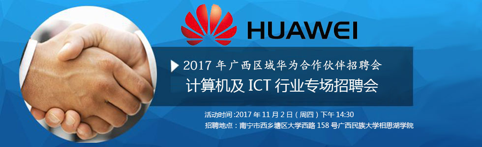 為積極推動(dòng)ICT專業(yè)人才充分就業(yè),為2018級(jí)應(yīng)屆生搭建更加廣闊的求職平臺(tái),華為技術(shù)有限公司聯(lián)合廣西區(qū)域華為合作伙伴于2017年11月2日(周四)舉辦2017年“廣西區(qū)域華為合作伙伴專場(chǎng)招聘會(huì)”,傾力打造“計(jì)算機(jī)及ICT行業(yè)專場(chǎng)招聘會(huì)”,以滿足區(qū)內(nèi)ICT行業(yè)對(duì)人才的需求。