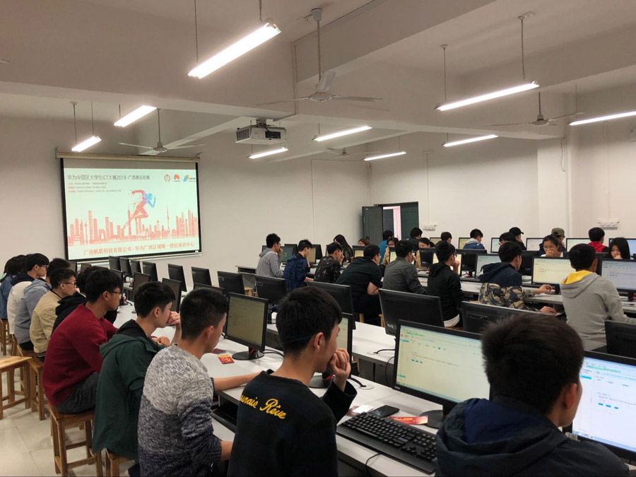 華為ICT學(xué)院2018中國(guó)區(qū)大學(xué)生ICT大賽-廣西賽區(qū)由華為技術(shù)有限公司與廣西帆聯(lián)科技有限公司華為授權(quán)培訓(xùn)年中心共同主辦,桂林理工大學(xué)、廣西民族大學(xué)相思湖學(xué)院、柳州鐵道職業(yè)技術(shù)學(xué)院為承辦院校,本次大賽區(qū)內(nèi)共計(jì)18所院校450名計(jì)算機(jī)相關(guān)專業(yè)學(xué)生參賽,大賽于2018年4月14日15:00于南寧考點(diǎn)(相思湖學(xué)院)、桂林考點(diǎn)(桂林理工大學(xué))、柳州考點(diǎn)(柳州鐵道職業(yè)技術(shù)學(xué)院)三地同時(shí)開(kāi)賽。